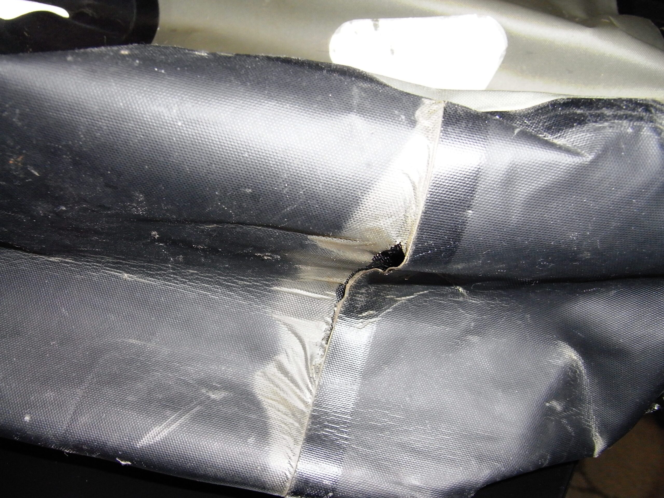 私のドライサイドバッグは劣化が進んでいるせいかちょっと力を加えるとどんどん裂け目が広がっていくような状態でしたが、なるたけ裂け目が広がっていない状態で修理を試みた方が無難です。あまりばらけてしまうと、立体的な形状にくっつけるのがとても難しくなります。